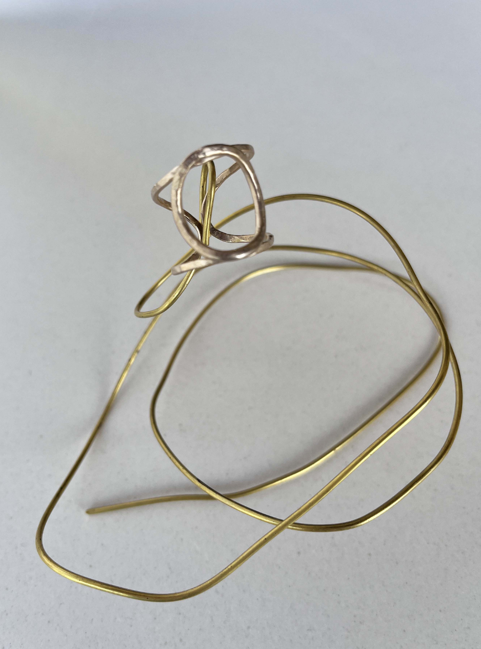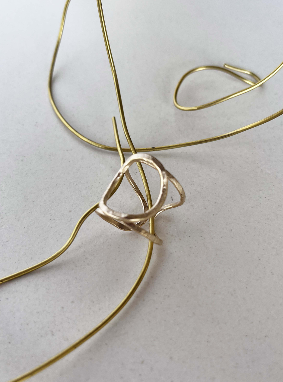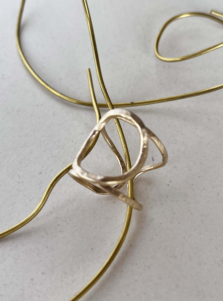 Anello CERCHIO minimale artigianale in ottone con rifinitura in oro chiaro satinato costruito in filo martellato a mano con possibilità di regolare la larghezza.