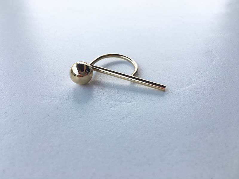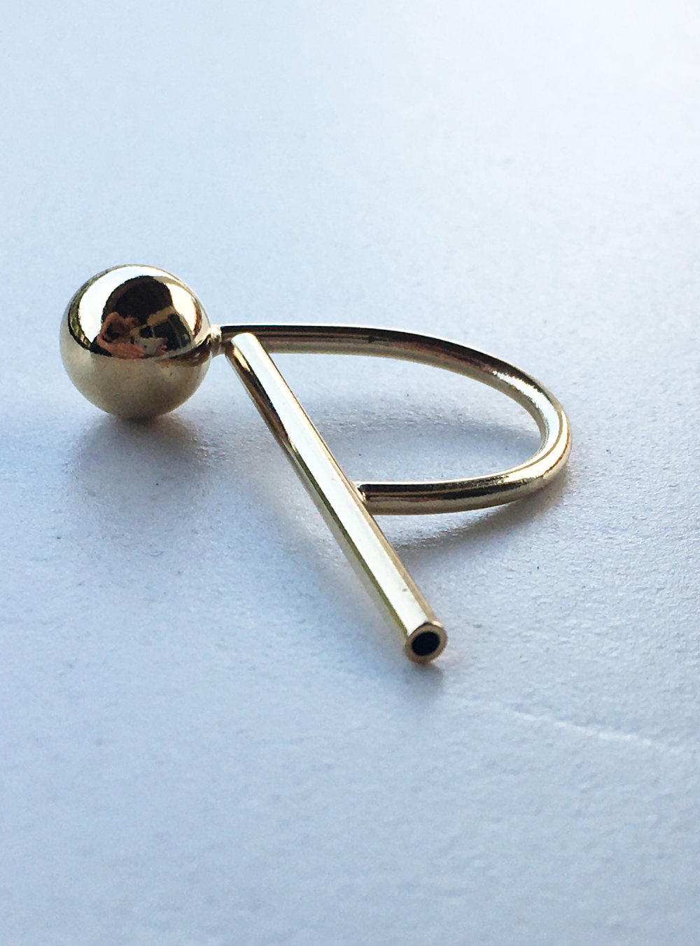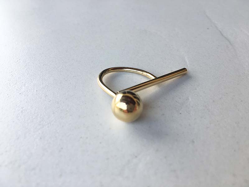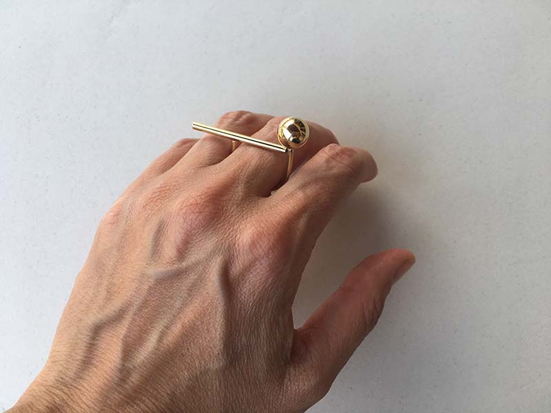 L’anello DO RING oro è un gioiello artigianale in ottone con rifinitura superficiale in oro lucido costruito a mano con tubo e sfera minimale.