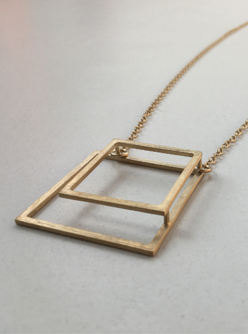 Collana Geometrica QUADRATO MEDIUM in Ottone con Rifinitura in Oro Chiaro Satinato
