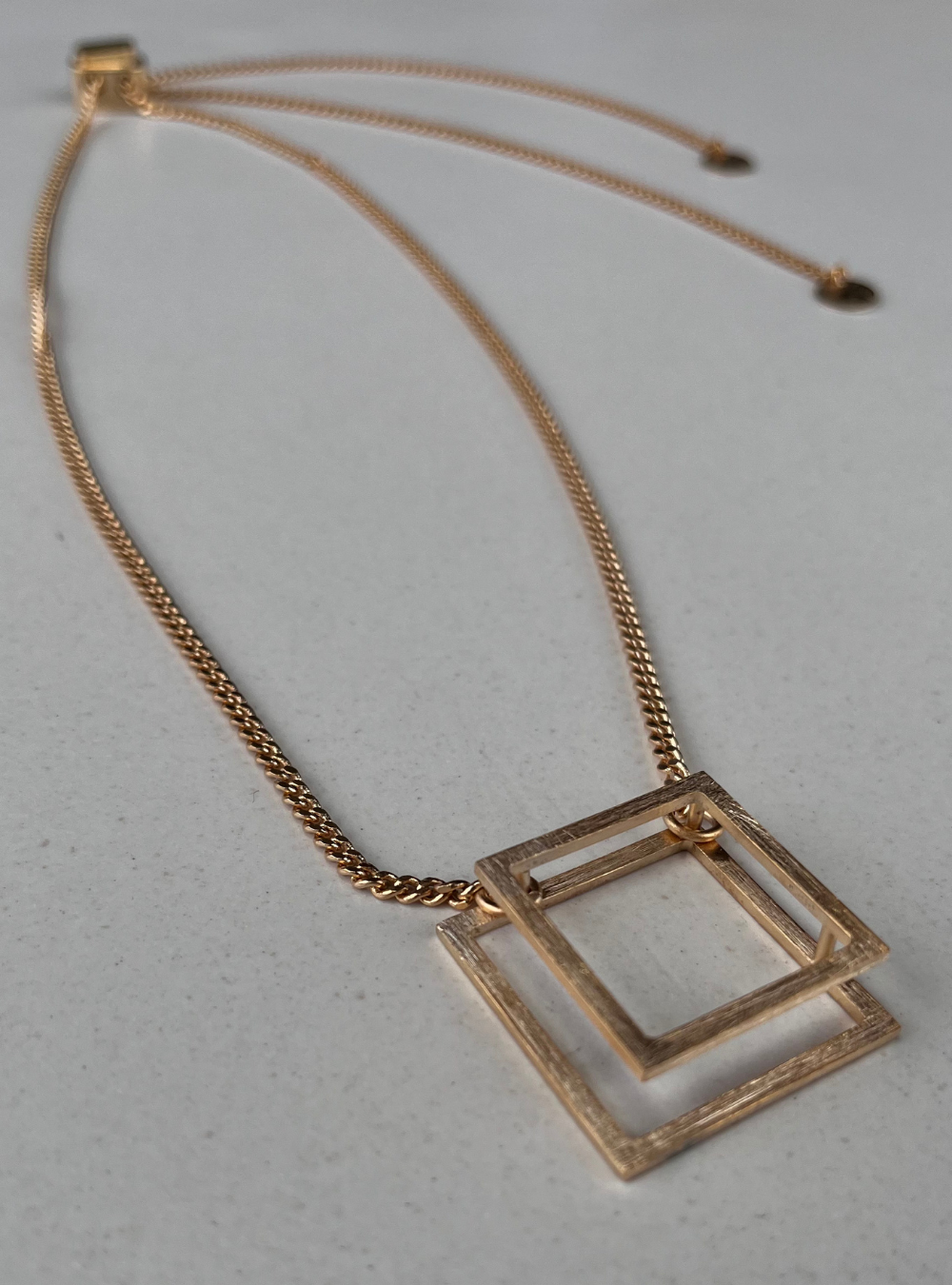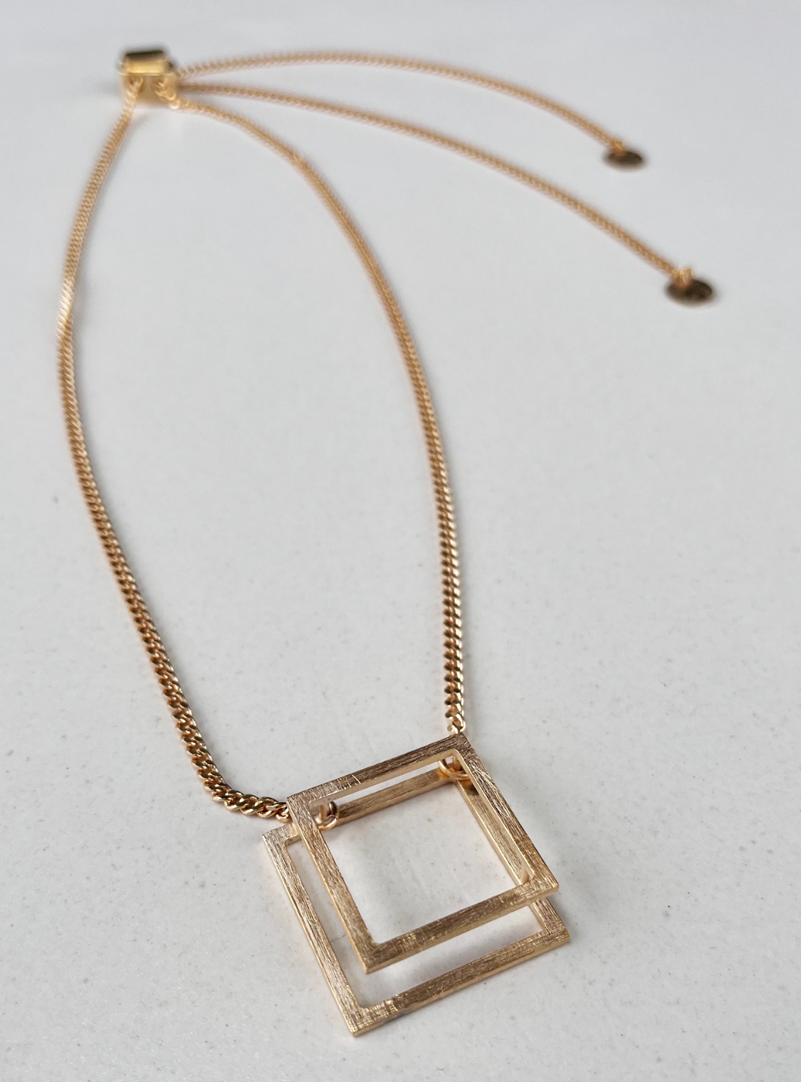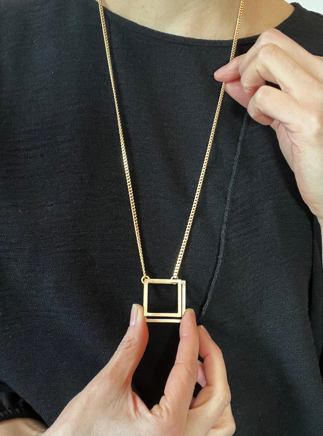 Collana Geometrica QUADRATO SMALL in Ottone con Rifinitura in Oro Chiaro Satinato