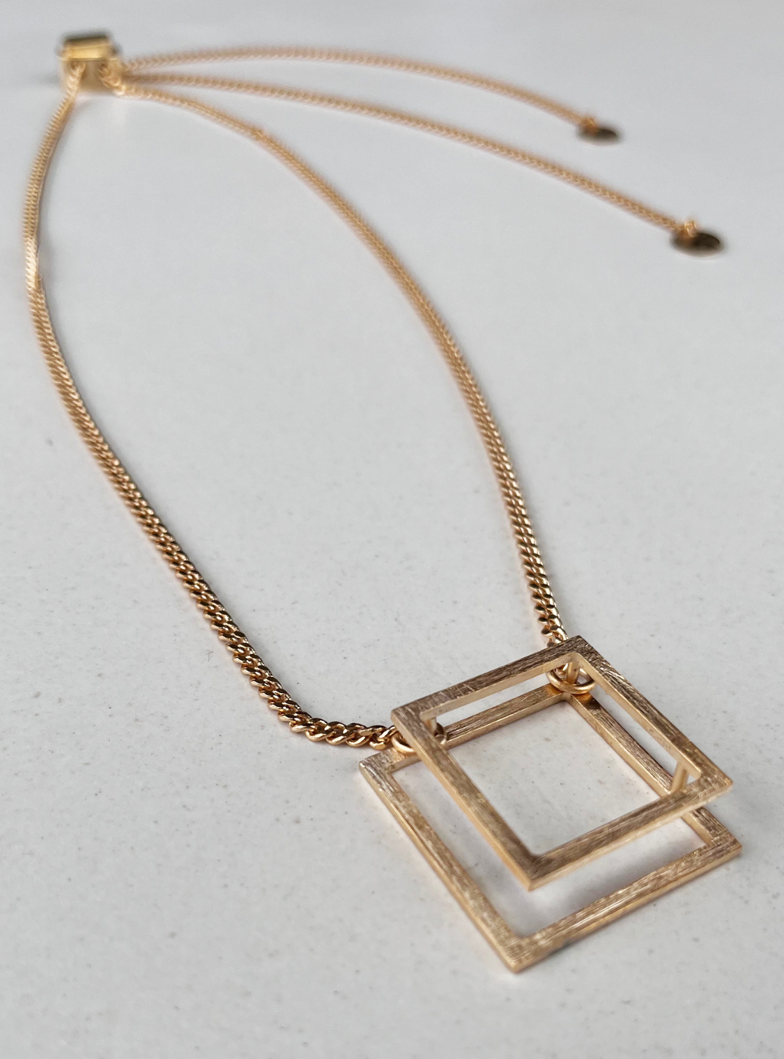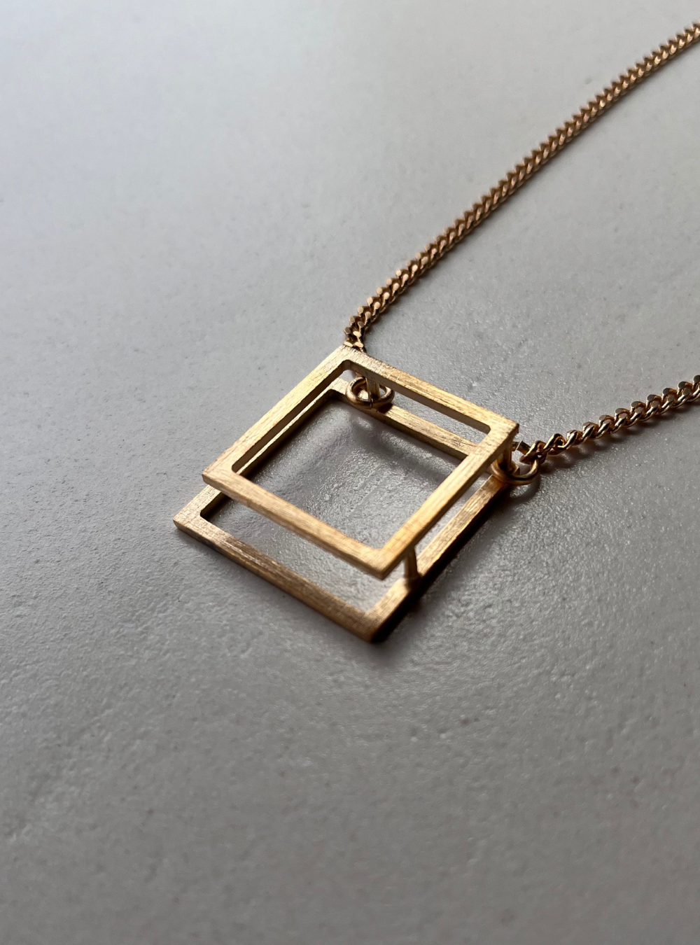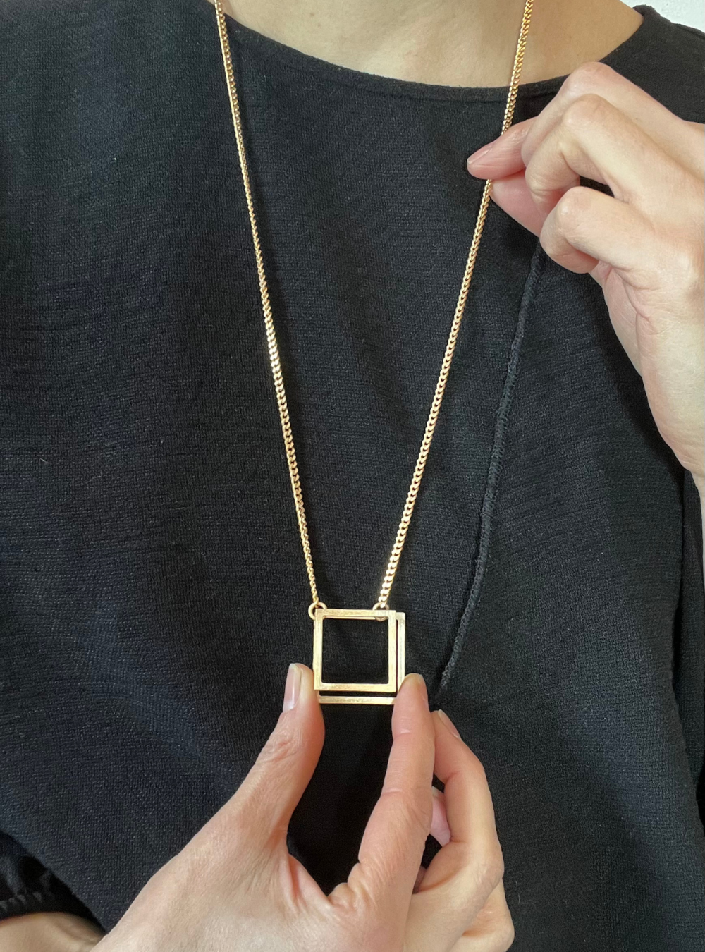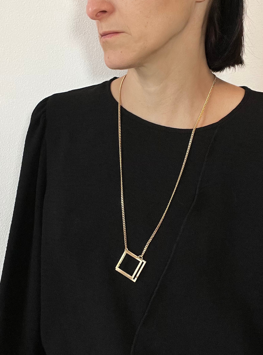 Collana Geometrica QUADRATO SMALL in Ottone con Rifinitura in Oro Chiaro Satinato