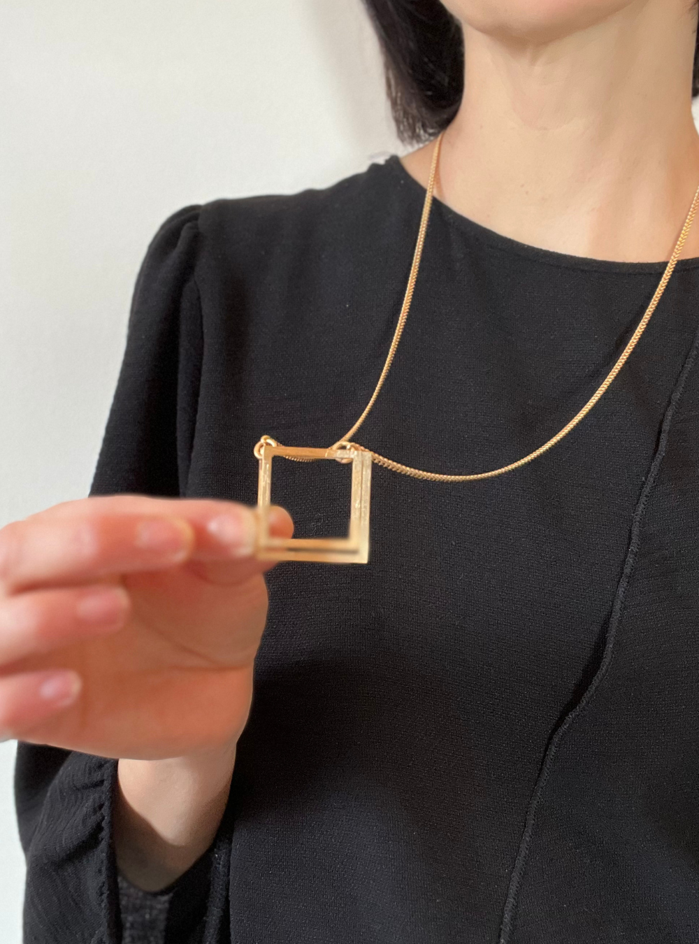 La collana geometrica QUADRATO SMALL è un gioiello artigianale in ottone con trattamento in oro chiaro satinato. Per la natura artigianale di questa collana si raccomanda di conservarla con cura e riporla nel loro apposito sacchetto quando non indossata.