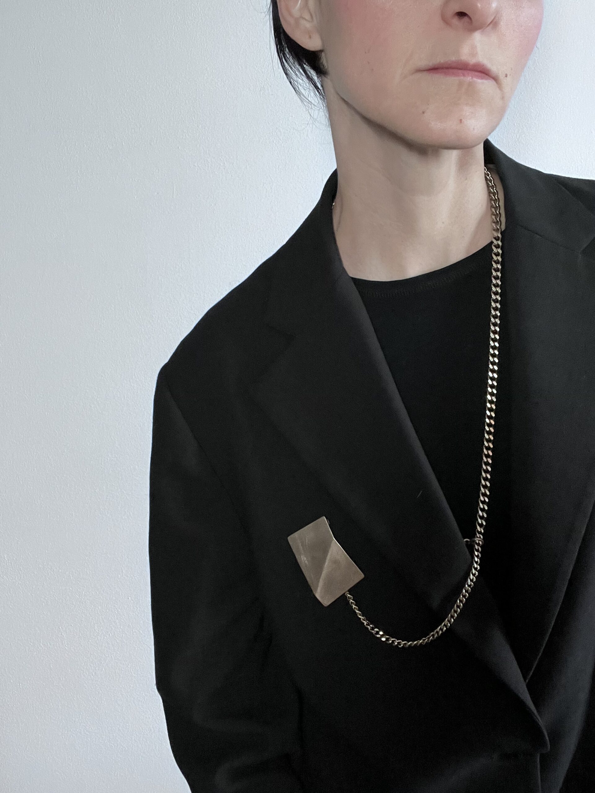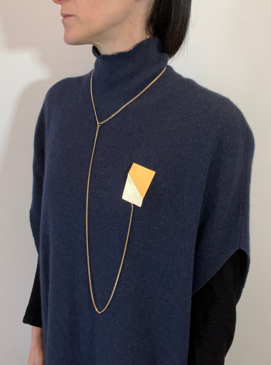 La collana spilla SU & GIÙ nasce dall’incontro tra geometria e movimento.