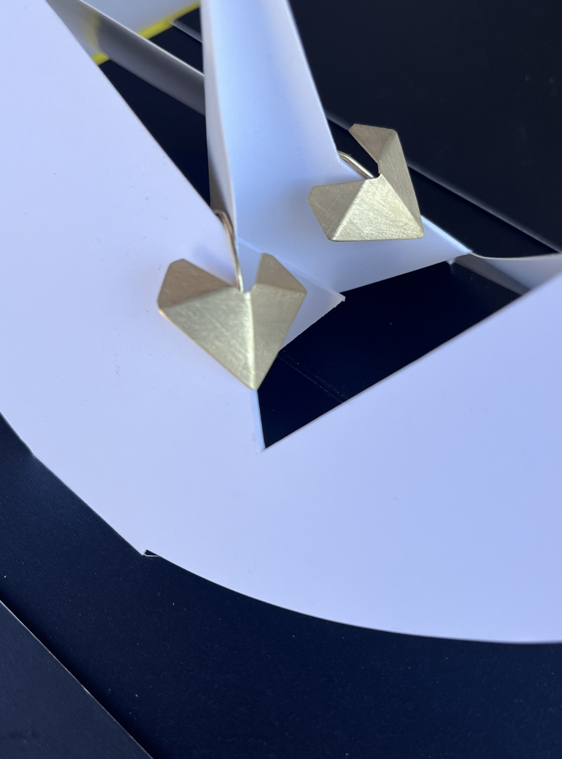 Gli orecchini CUORE MINIMO ciondoli sono gioielli artigianali in ottone con rifinitura in oro chiaro satinato in lamina di ottone piegata e lavorata a mano con chiusura a farfallina.