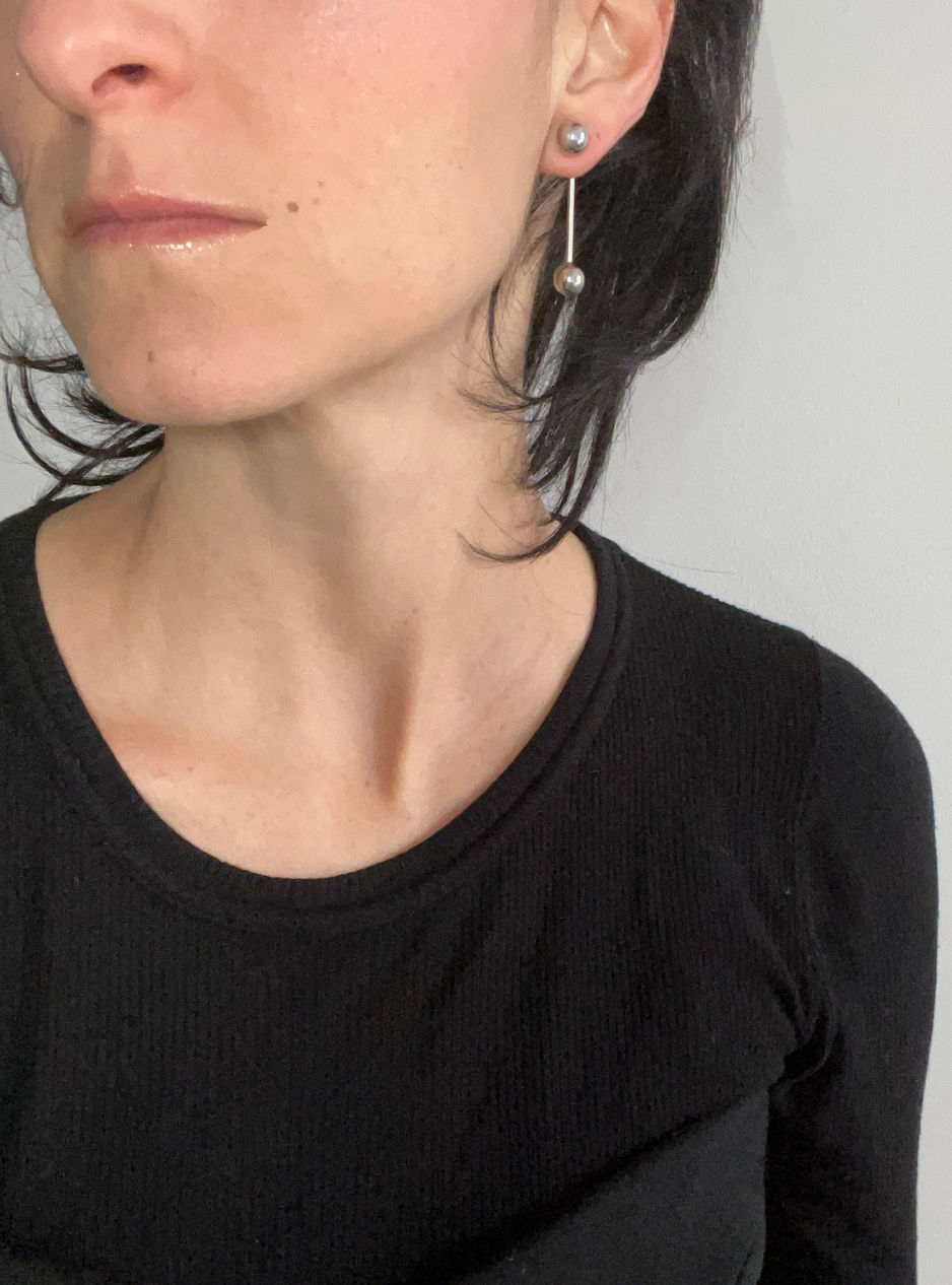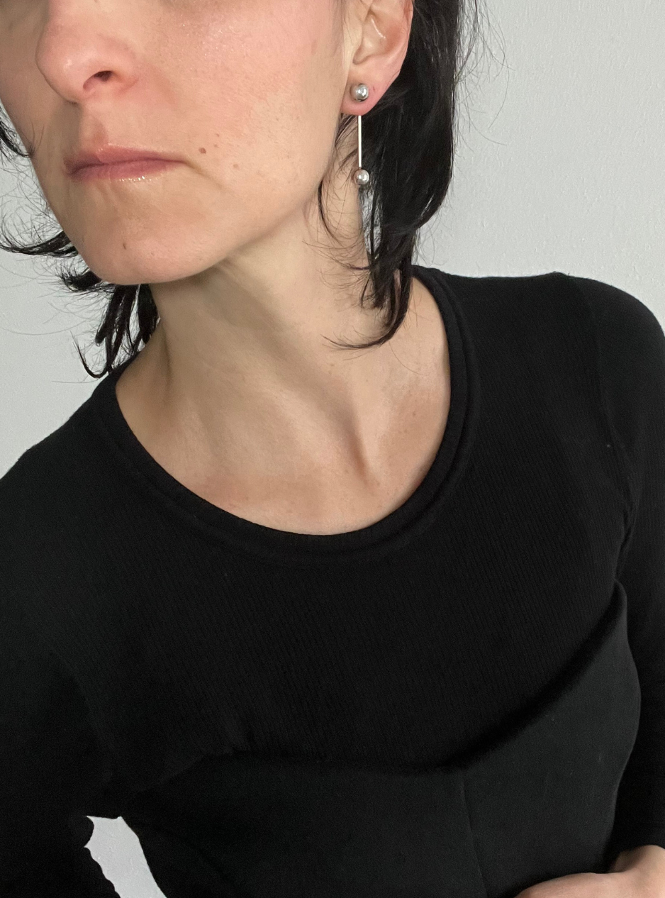 Gli orecchini geometrici DOUBLE SMALL fanno parte della collezione DO jewels bellissimi da abbinare con la collana GEOMETRICA quando indossi solo le due sfere o con una collana più semplice quando aggiungi i due ciondoli come la collana ORBITA2 .