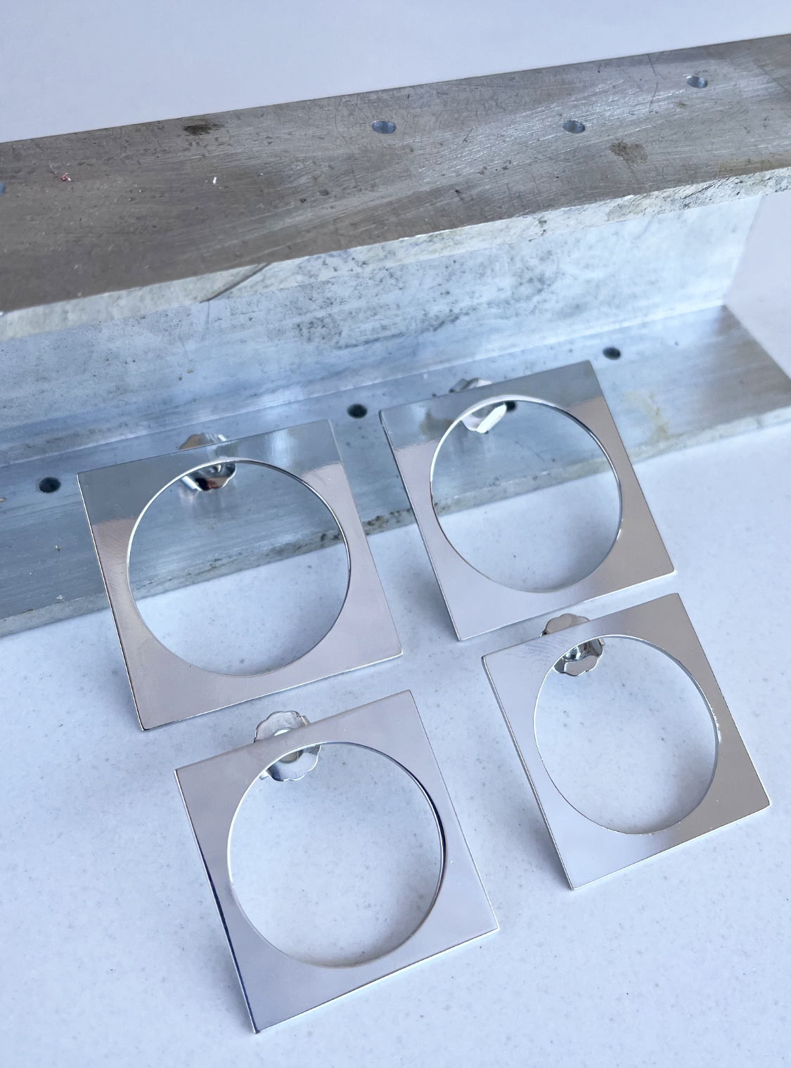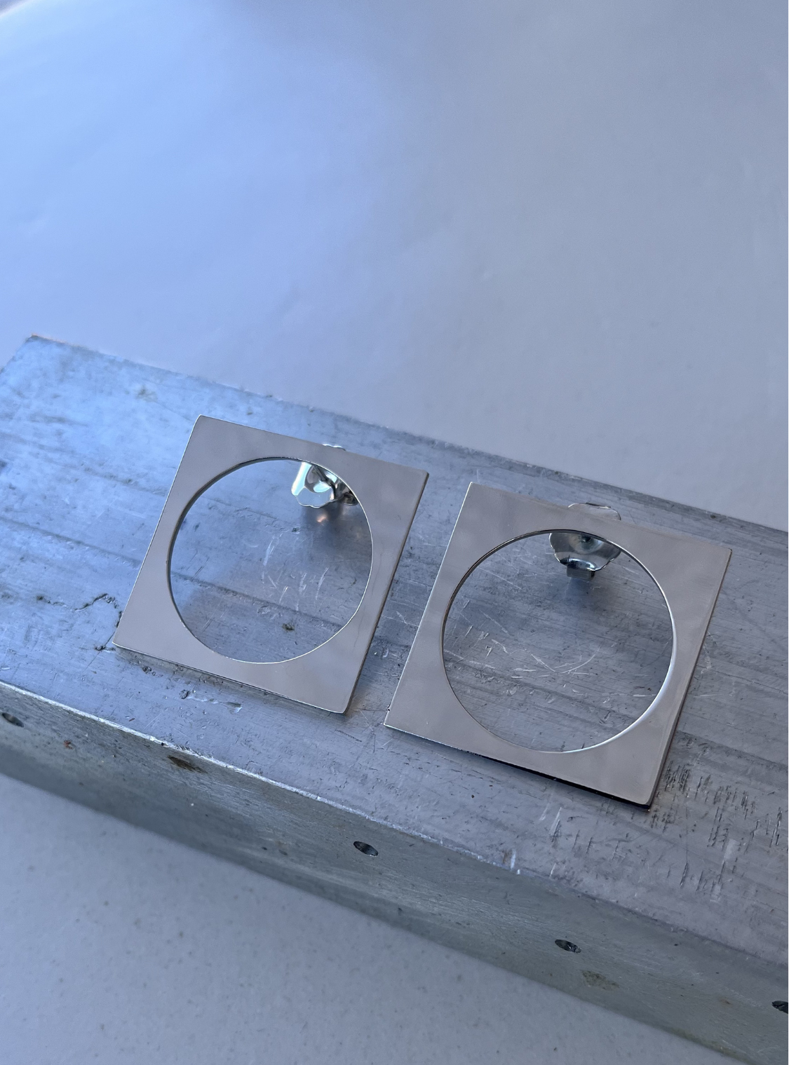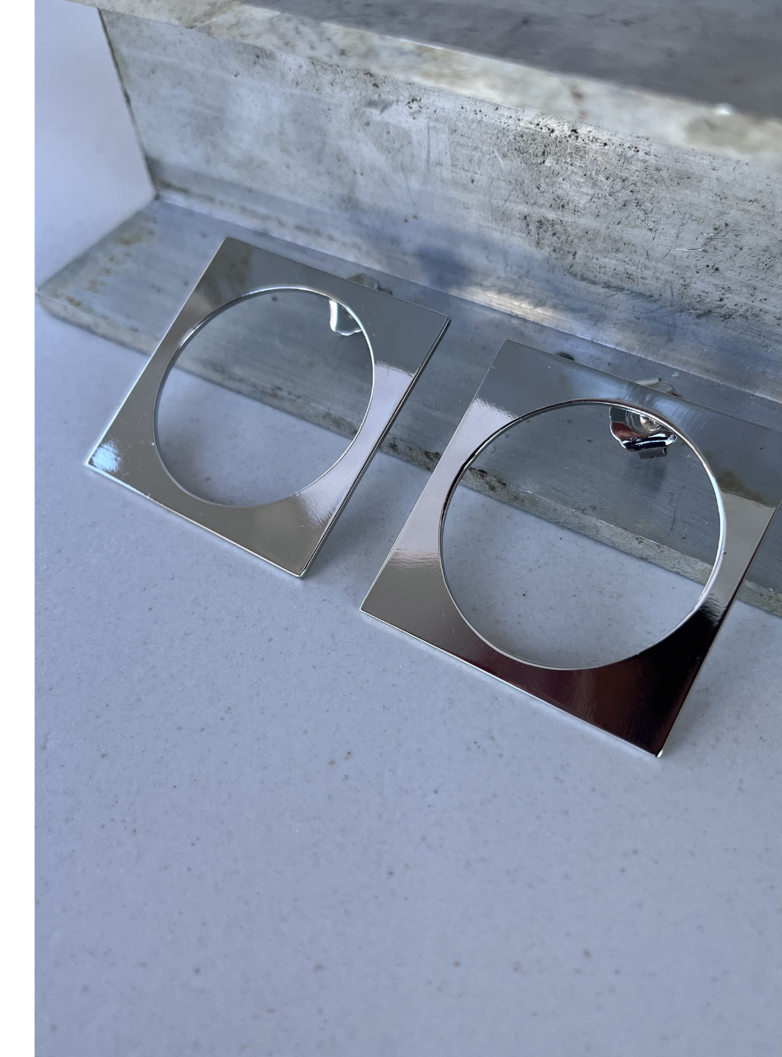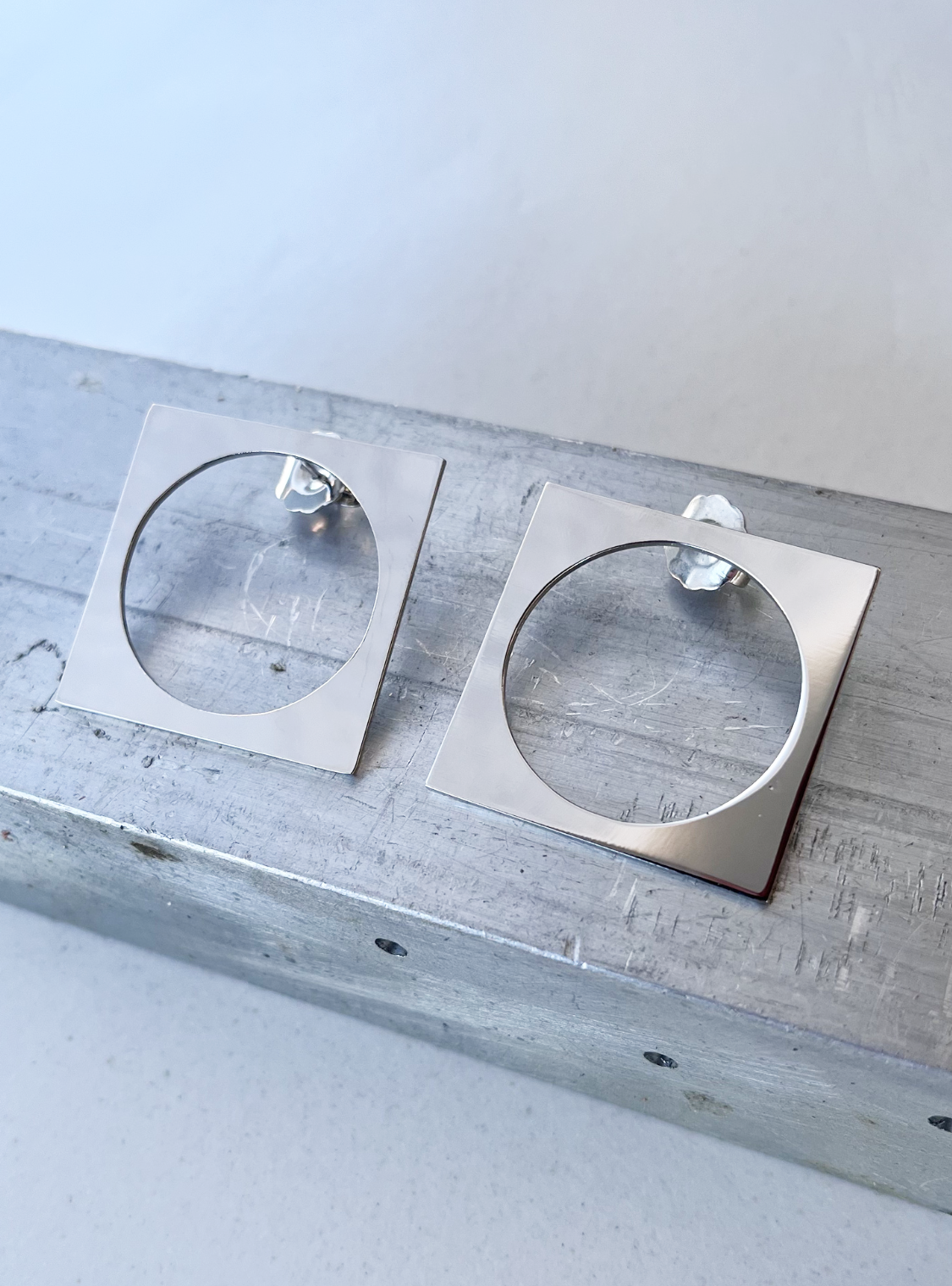 Un equilibrio perfetto tra rigore geometrico e leggerezza visiva. Questi orecchini artigianali presentano una silhouette quadrata essenziale, alleggerita da un’apertura circolare centrale che crea un raffinato gioco di pieni e vuoti. Il contrasto tra la linearità del perimetro esterno e la morbidezza del cerchio interno dona al design un carattere contemporaneo, minimal e distintivo.