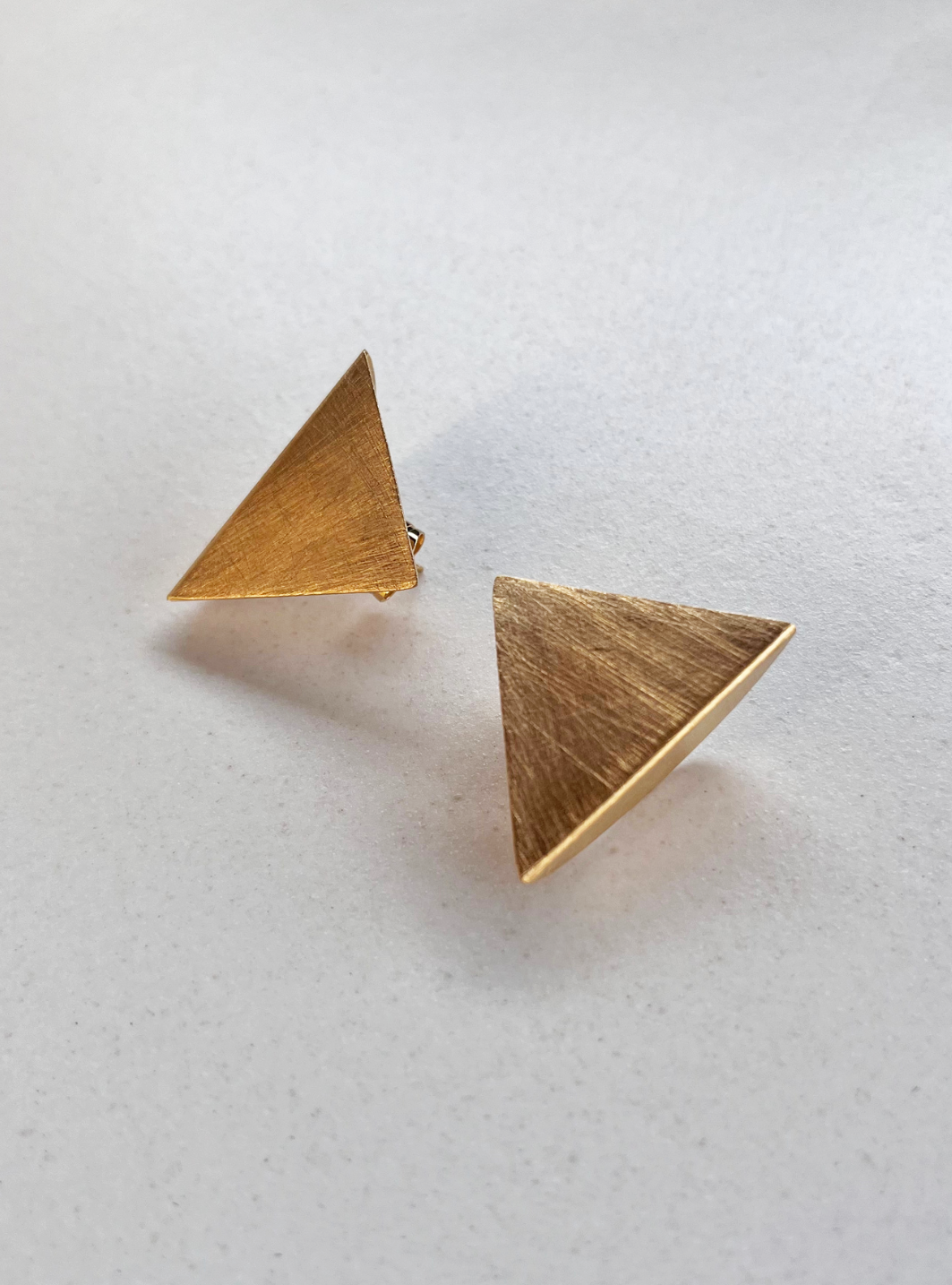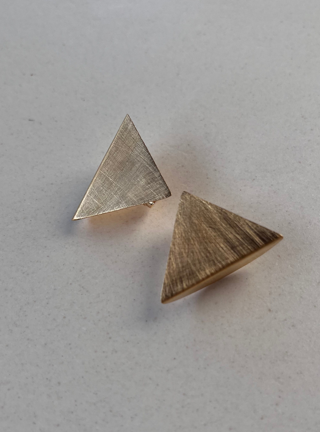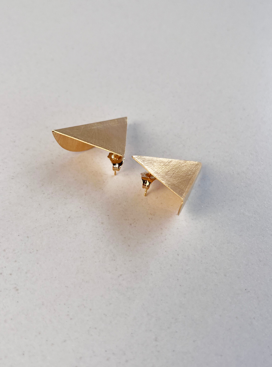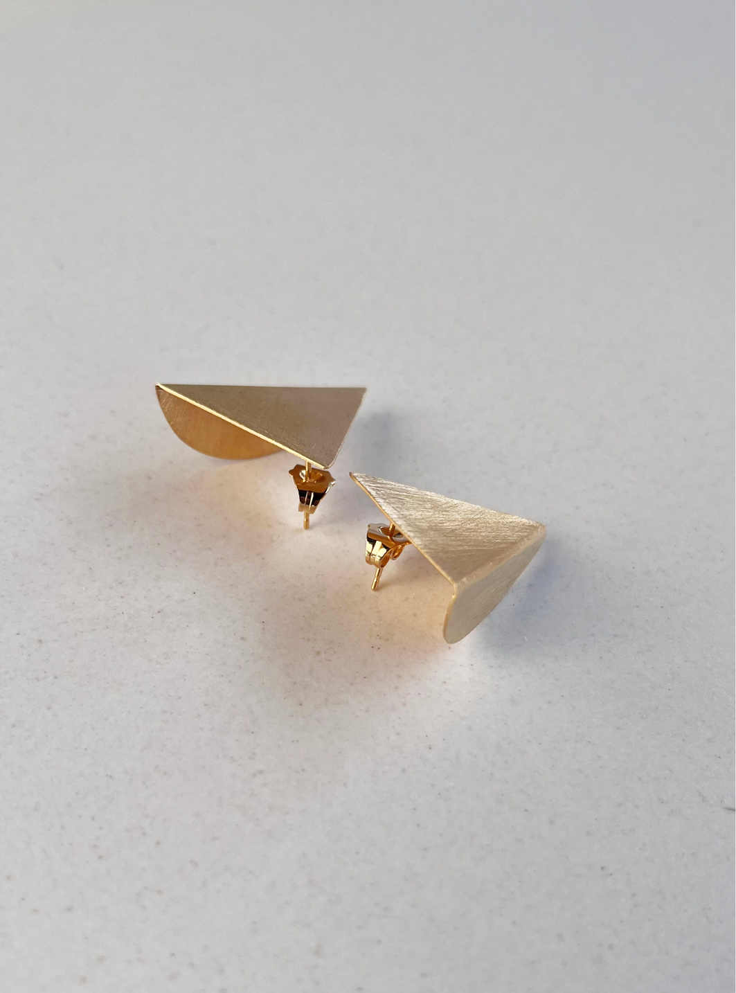 Gli orecchini SIMMETRIA MOMENTANEA sono gioielli artigianali in ottone con rifinitura in oro chiaro satinato in lamina di ottone piegata e lavorata a mano con chiusura a farfallina.